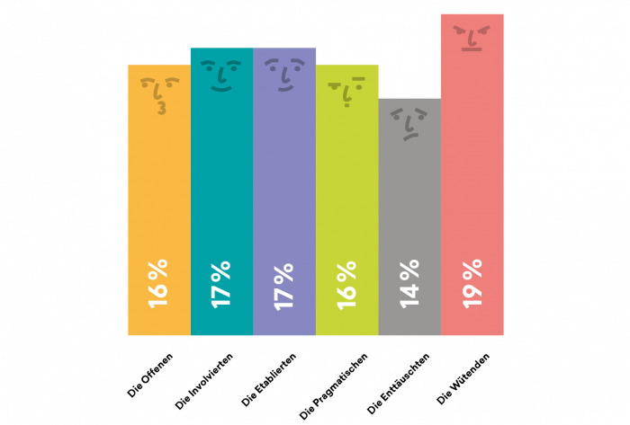Während 80% der Wütenden den gesellschaftlichen Wandel z.B. als zu schnell empfindet, begrüßen 59% der Offenen ihn als Notwendigkeit.