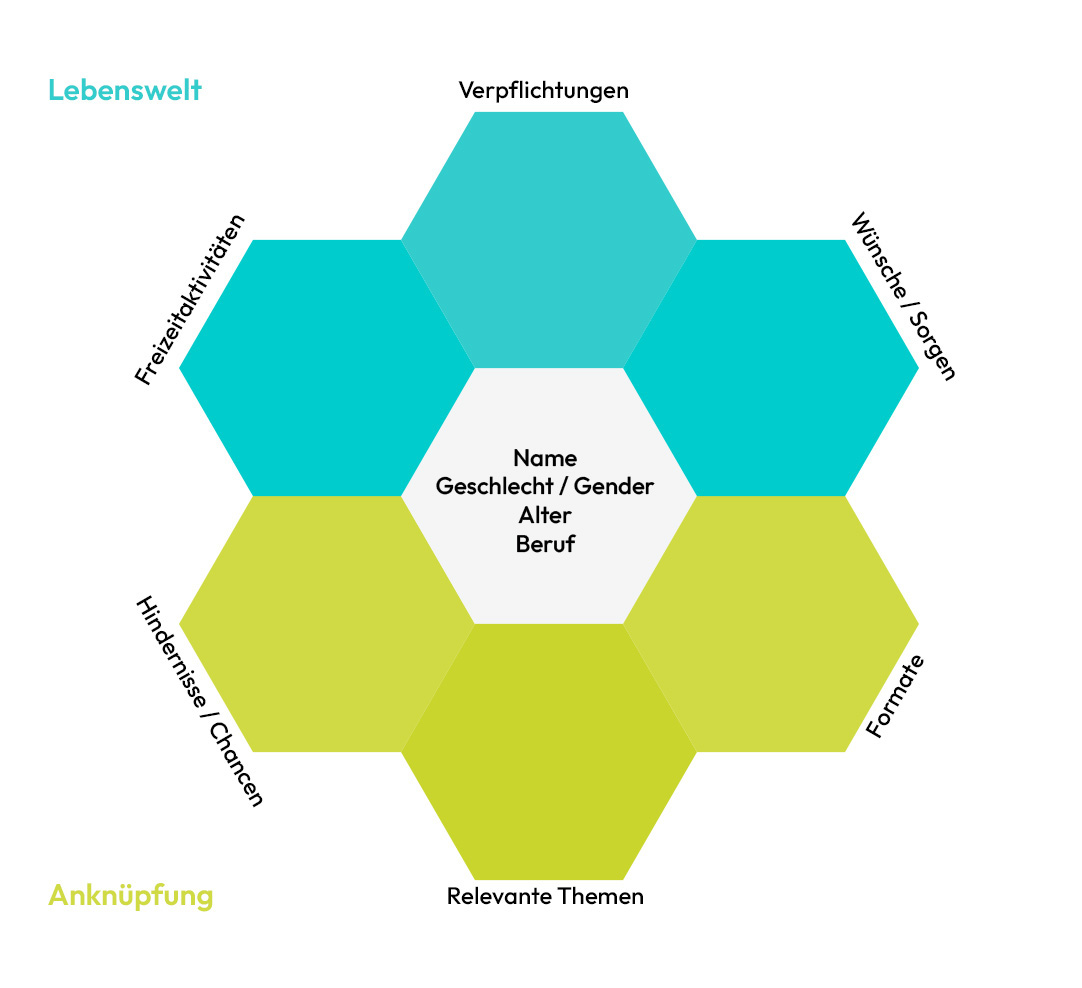 Da Sie eine Kernzielgruppe entwickelt haben, empfiehlt sich, insbesondere für diese, den Prozess so barrierefrei wie möglich zu gestalten. Das ist die Nutzer*innengruppe, die Sie ins Zentrum Ihrer Aufmerksamkeit rücken!